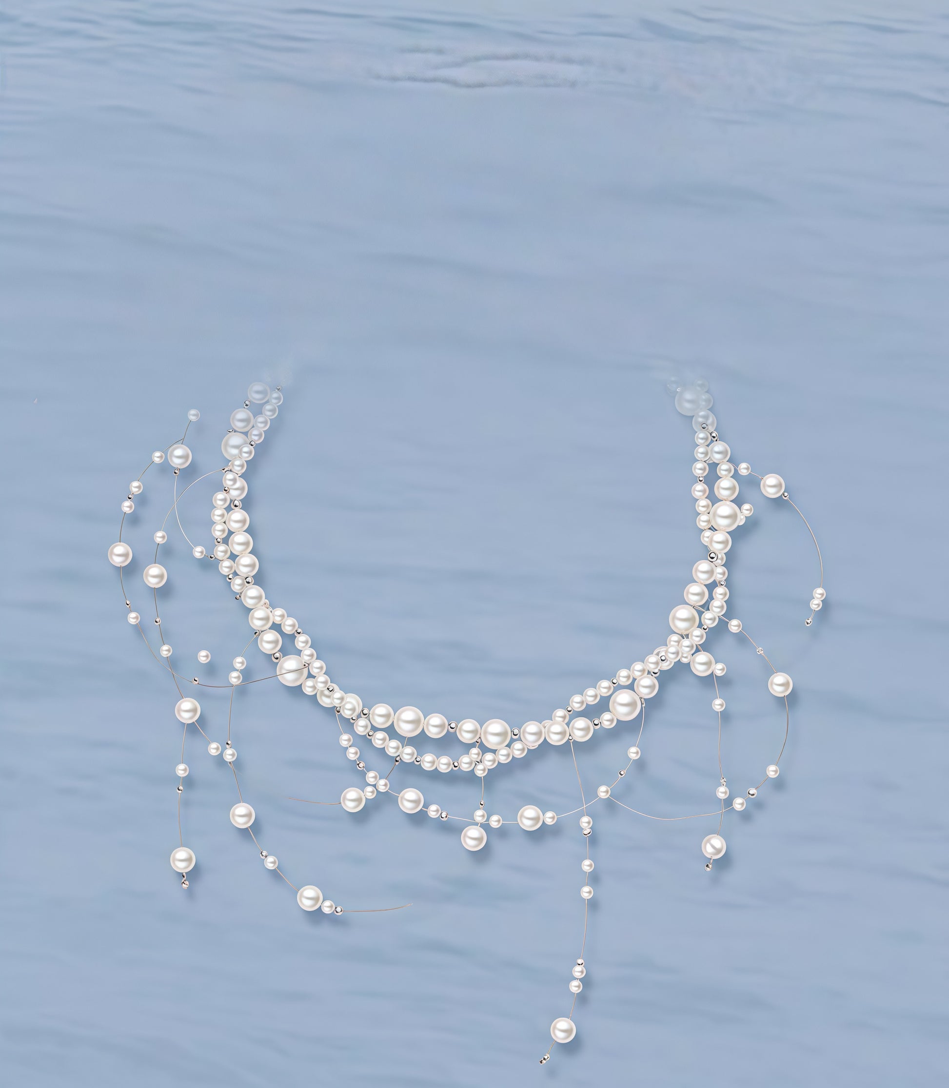 Dimensional Allure:Graduated pearls intertwine like distant galaxies, adding sculptural depth.